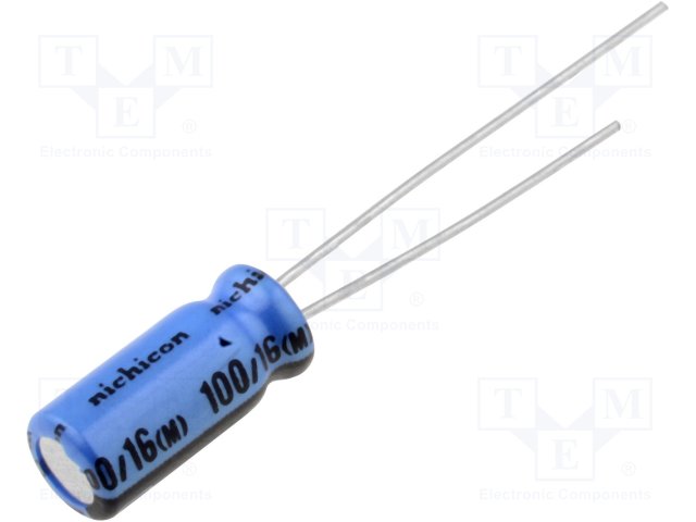 Конденсатор: электролитический; THT; 100мкФ; 16ВDC; Ø5x11мм; ±20% |