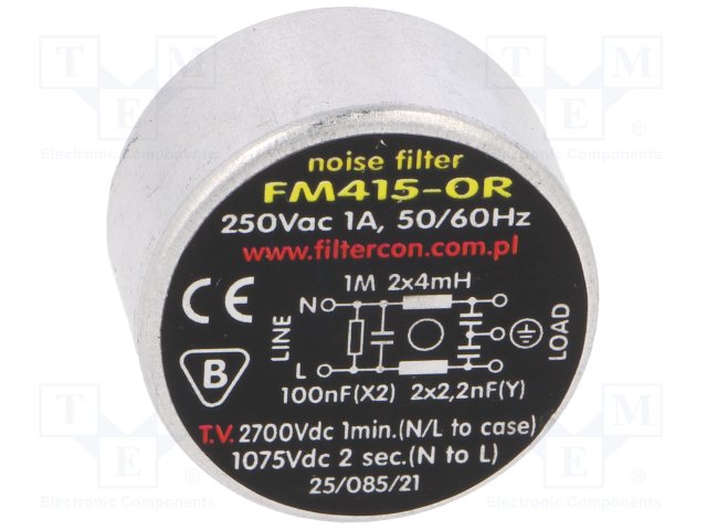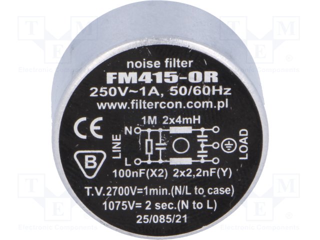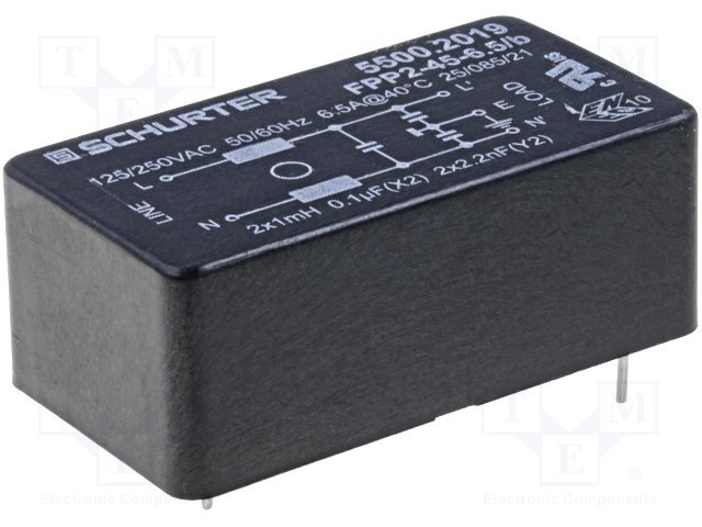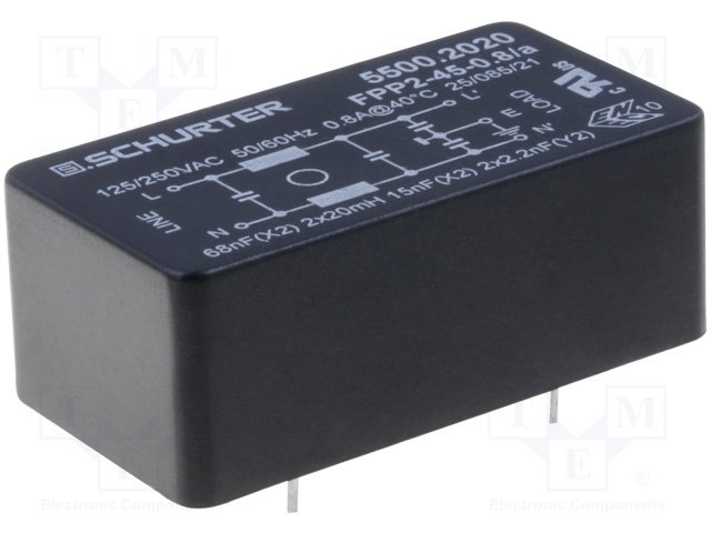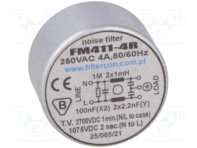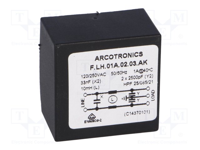 Фильтр: помехоподавляющий; однофазный; 250ВAC; Cx: 100нФ; Cy: 2,2нФ |