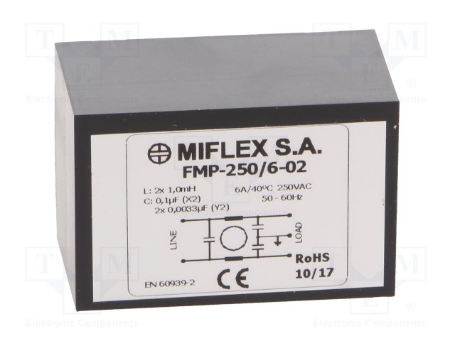 Фильтр: помехоподавляющий; 250ВAC; Iраб.макс: 6А; Ir: 0,43мА |