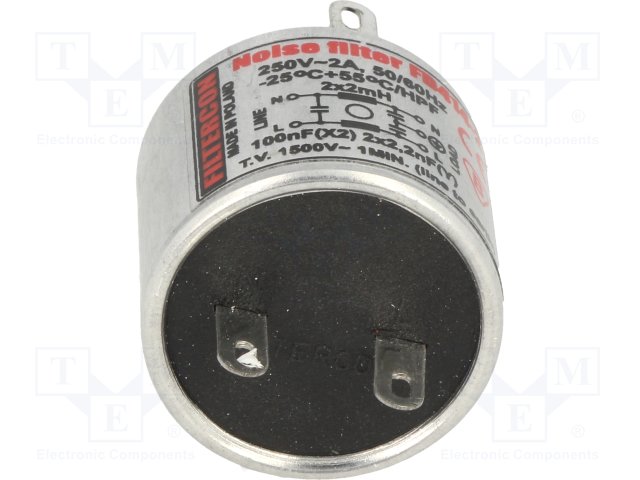 Фильтр: помехоподавляющий; сетевой; Cx: 100нФ; Cy: 2,2нФ; 2мГн; 250В |