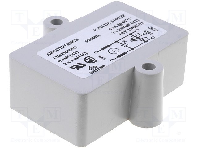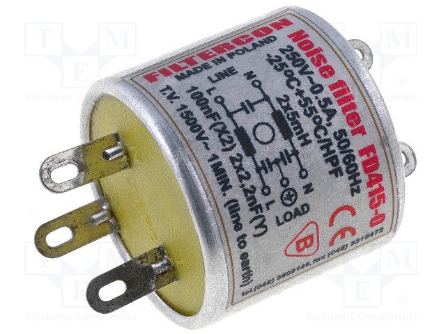 Фильтр: помехоподавляющий; однофазный; 250ВAC; Cx: 100нФ; Cy: 4,7нФ |