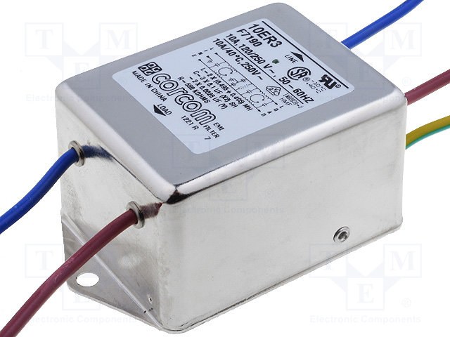 Фильтр: помехоподавляющий; 250ВAC; Iраб.макс: 10А; Выводы: провода