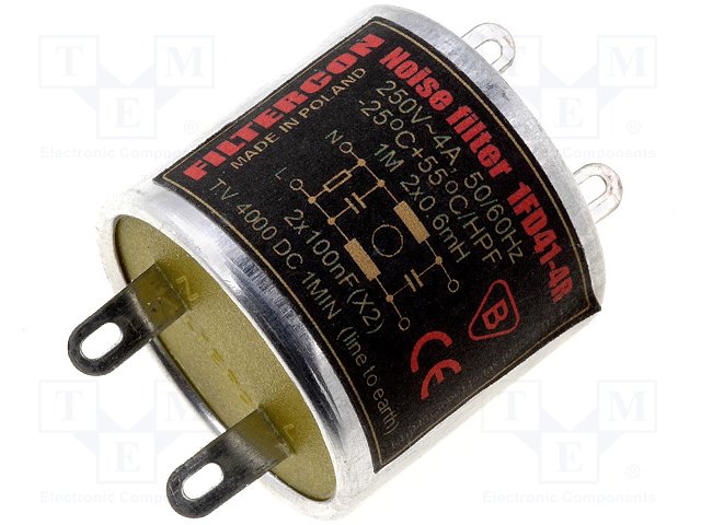 Фильтр: помехоподавляющий; 250ВAC; Cx: 1мкФ; Cy: 4,7нФ; 1,3мГн; 1мОм