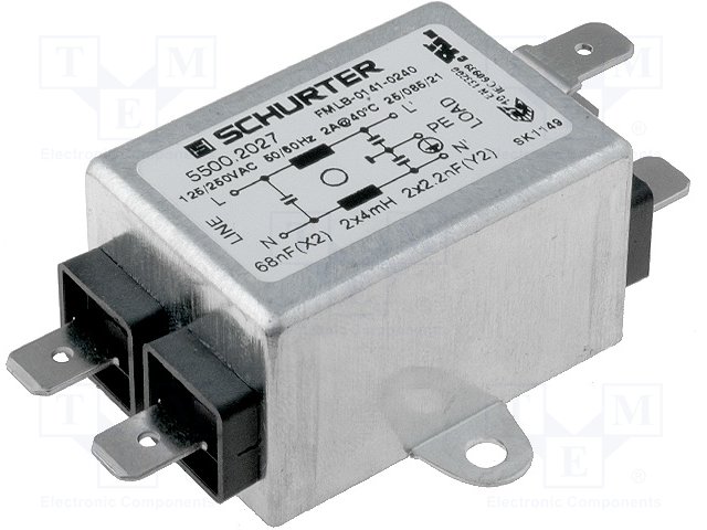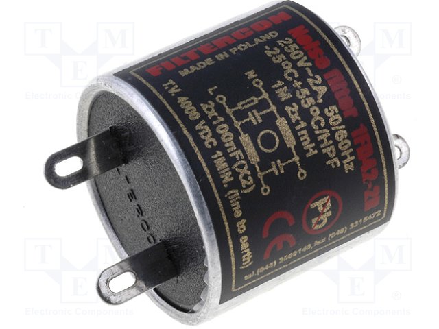 Фильтр: помехоподавляющий; сетевой; 100нФ; 1мГн; Iраб.макс: 2А