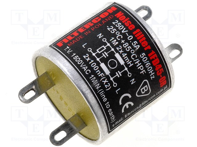 Фильтр: помехоподавляющий; сетевой; 100нФ; 4мГн; Iраб.макс: 0,5А