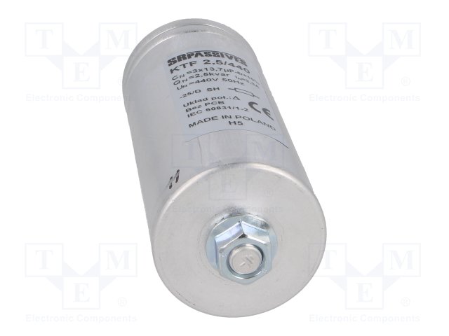Конденсатор: полипропиленовый; однофазный; Q@50Гц: 5кВАР; 440ВAC