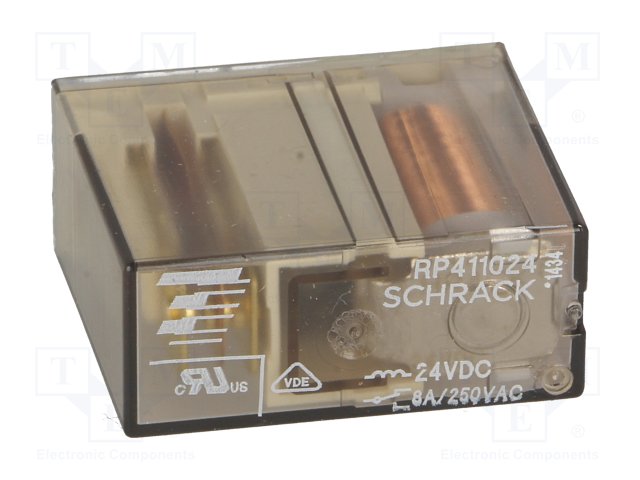 Реле: электромагнитное; SPDT; Uобмотки: 24ВDC; 8A/250ВAC; 8A/24ВDC |