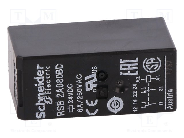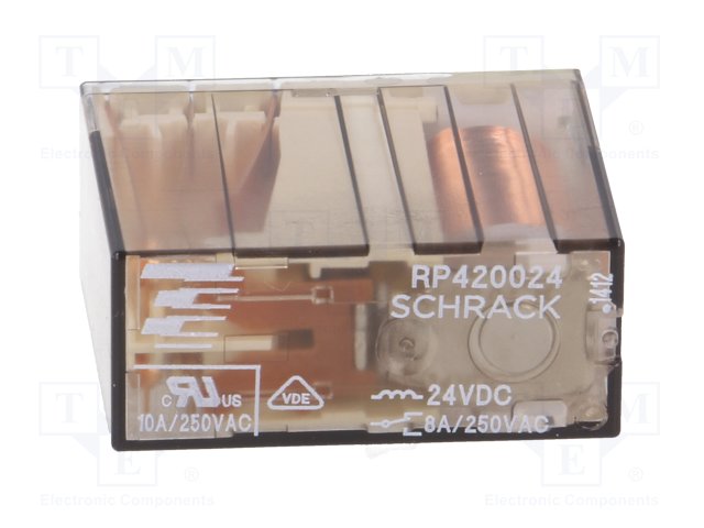 Реле: электромагнитное; DPDT; Uобмотки: 24ВDC; 8A/250ВAC; 8A/24ВDC |