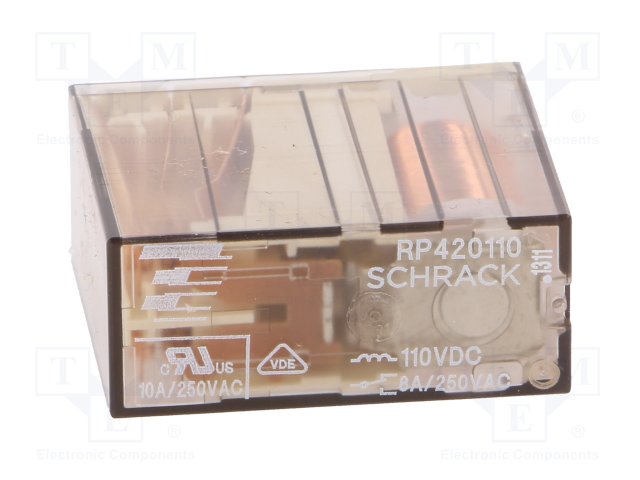 Реле: электромагнитное; DPDT; Uобмотки: 110ВDC; 8A/250ВAC; 23100Ом |