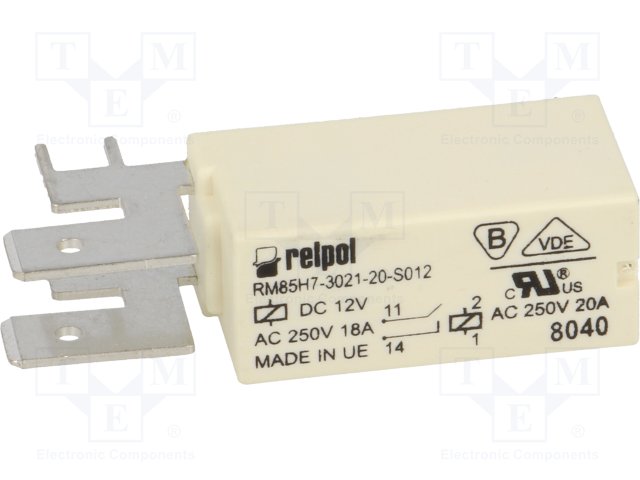 Реле: электромагнитное; SPST-NO; Uобмотки: 12ВDC; 20A/250ВAC; 20А |