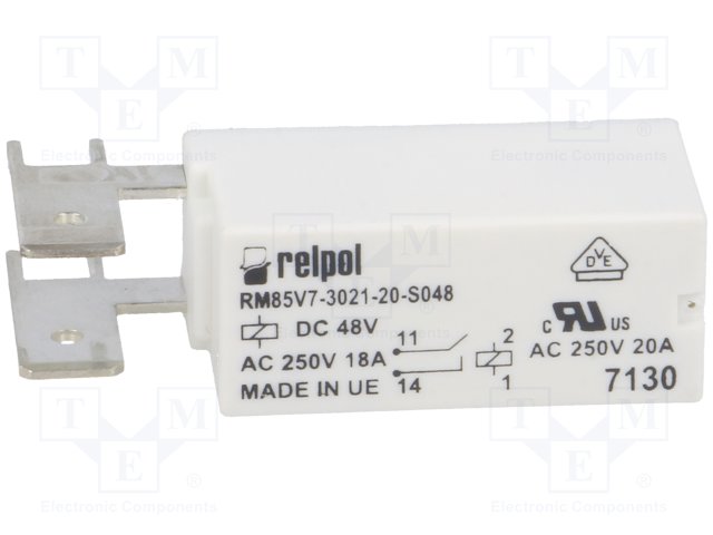 Реле: электромагнитное; SPDT; Uобмотки: 48ВDC; 16A/250ВAC; 480мВт |