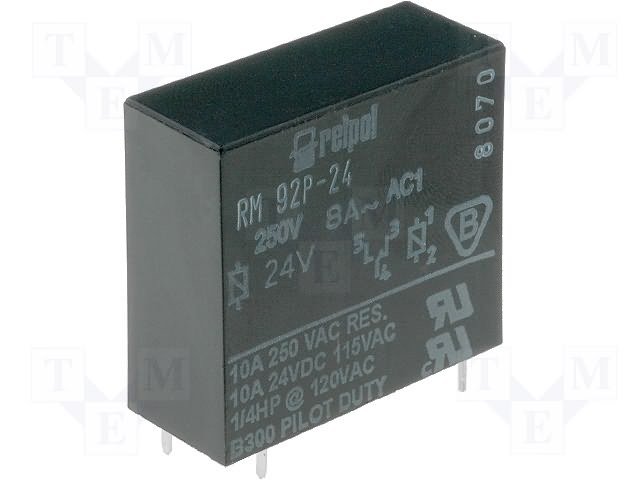 Реле: электромагнитное; SPDT; Uобмотки: 24ВDC; 8A/250ВAC; 8A/24ВDC |