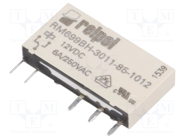 Реле: электромагнитное; SPDT; Uобмотки: 12ВDC; 6A/250ВAC; 6A/24ВDC |