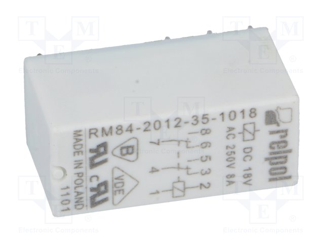 Реле: электромагнитное; DPDT; Uобмотки: 18ВDC; 8A/250ВAC; 8A/24ВDC |