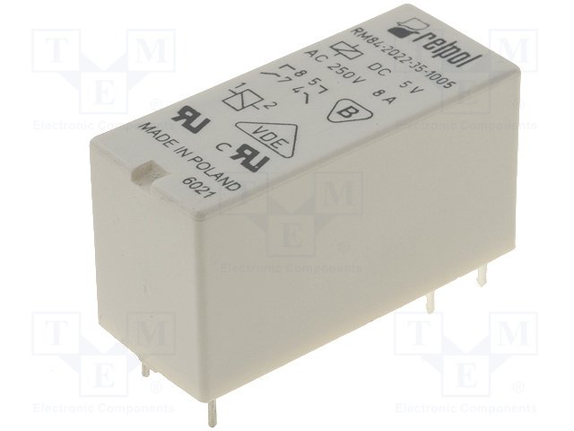 Реле: электромагнитное; DPDT; Uобмотки: 5ВDC; 8A/250ВAC; 8A/24ВDC |