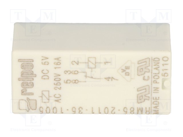 Реле: электромагнитное; SPDT; Uобмотки: 5ВDC; 16A/250ВAC; toff: 3мс |