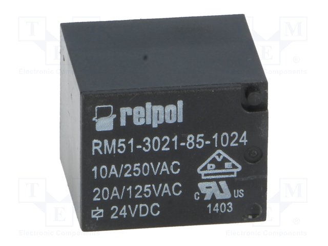Реле: электромагнитное; SPST-NO; Uобмотки: 24ВDC; 10A/250ВAC; 10А |