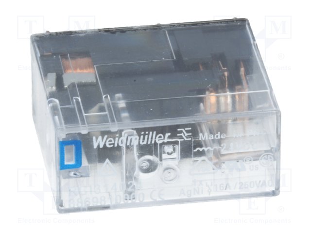 Реле: электромагнитное; SPDT; Uобмотки: 24ВAC; 16A/240ВAC; 50мОм |