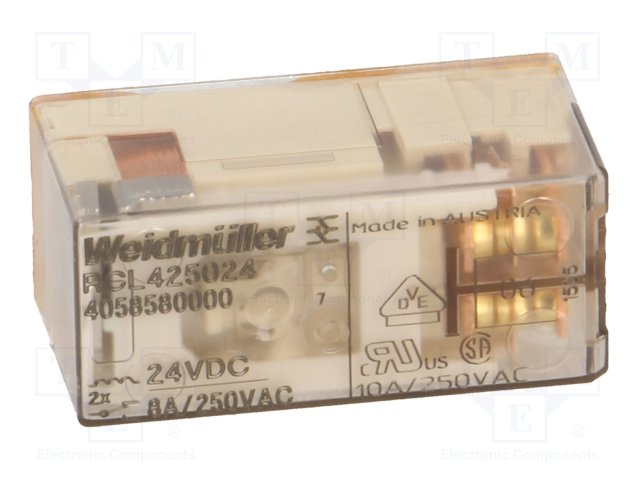 Реле: электромагнитное; SPDT; Uобмотки: 24ВDC; 8A/250ВAC; 8A/28ВDC |