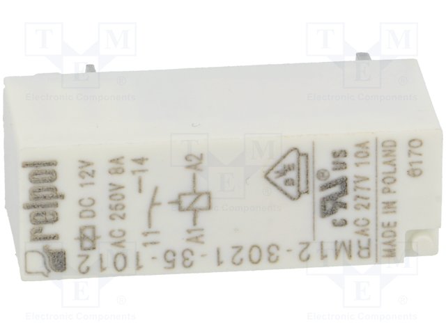 Реле: электромагнитное; SPDT; Uобмотки: 12ВDC; 8A/250ВAC; 8A/28ВDC |