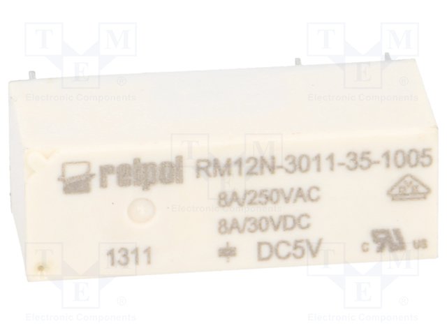 Реле: электромагнитное; SPDT; Uобмотки: 5ВDC; 8A/250ВAC; 8A/24ВDC |