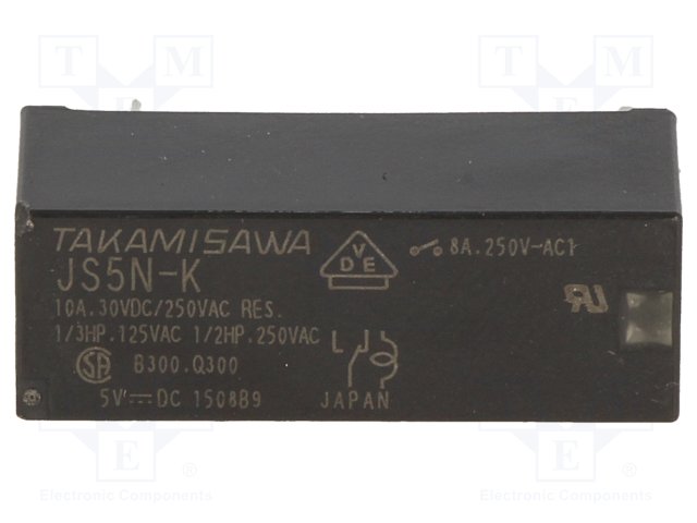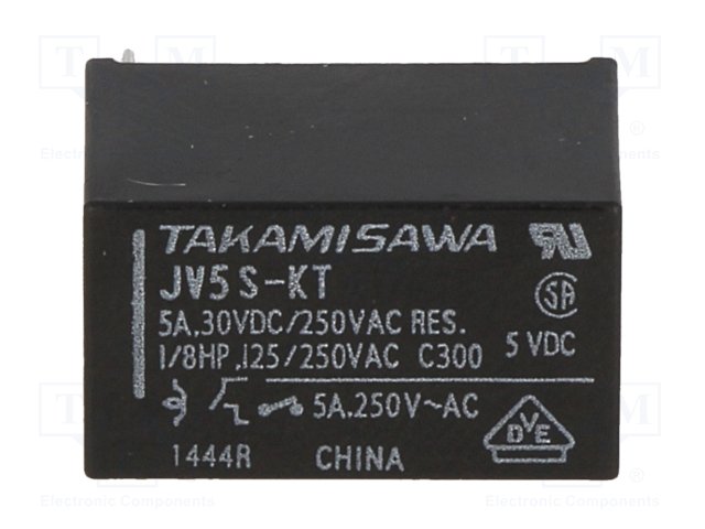 Реле: электромагнитное; SPDT; Uобмотки: 5ВDC; 10A/250ВAC; 5A/30ВDC |
