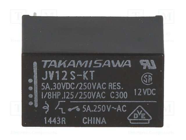 Реле: электромагнитное; SPDT; Uобмотки: 5ВDC; 12A/250ВAC; 530мВт |