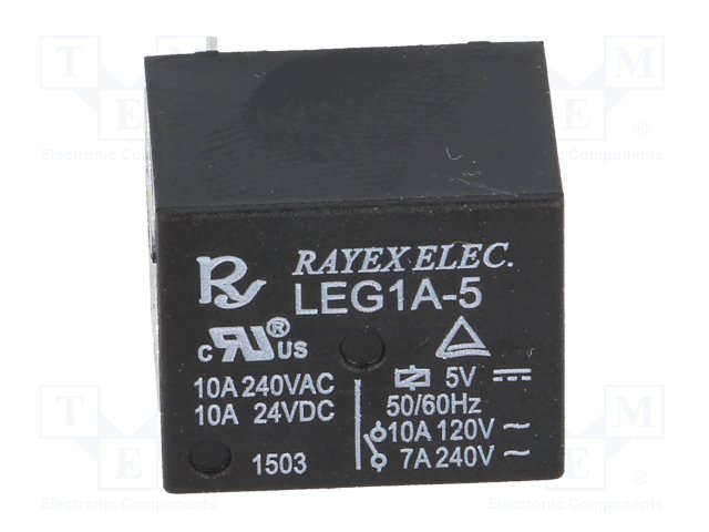 Реле: электромагнитное; SPDT; Uобмотки: 5ВDC; 10A/120ВAC; toff: 8мс |