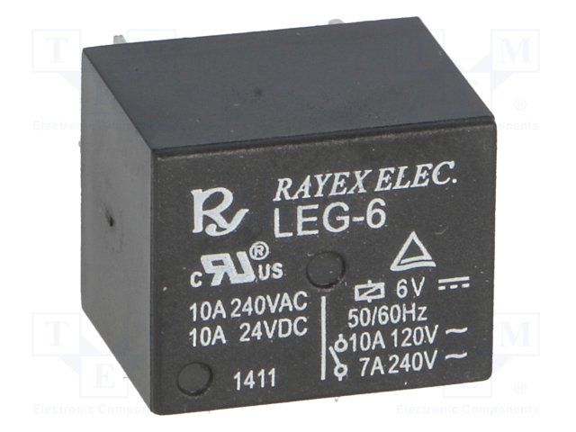 Реле: электромагнитное; SPDT; Uобмотки: 6ВDC; 10A/120ВAC; toff: 8мс |
