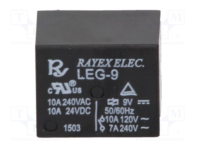 Реле: электромагнитное; SPDT; Uобмотки: 9ВDC; 10A/120ВAC; toff: 8мс |