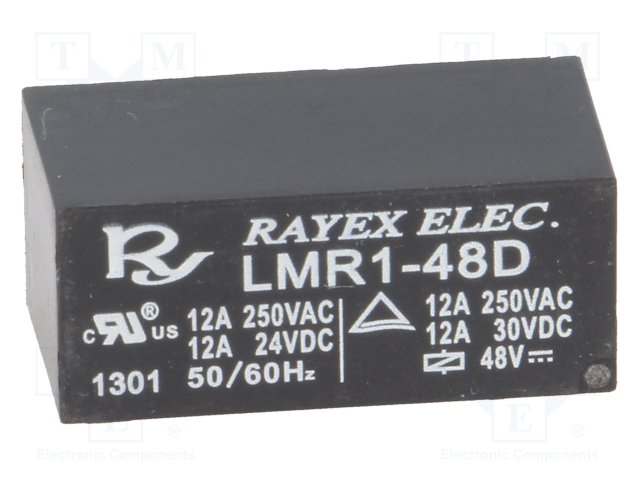 Реле: электромагнитное; SPDT; Uобмотки: 48ВDC; 12A/250ВAC; 530мВт |