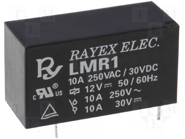 Реле: электромагнитное; SPDT; Uобмотки: 12ВDC; 12A/250ВAC; 530мВт |