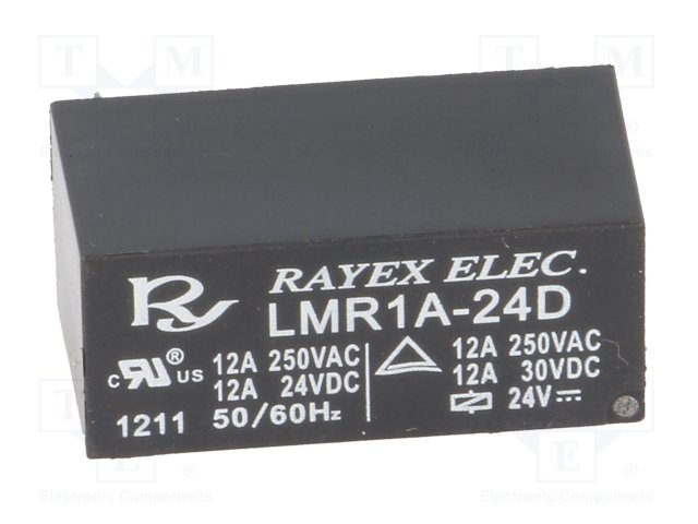 Реле: электромагнитное; SPST-NO; Uобмотки: 24ВDC; 12A/250ВAC; 12А |