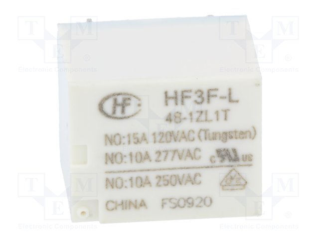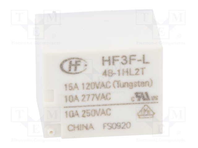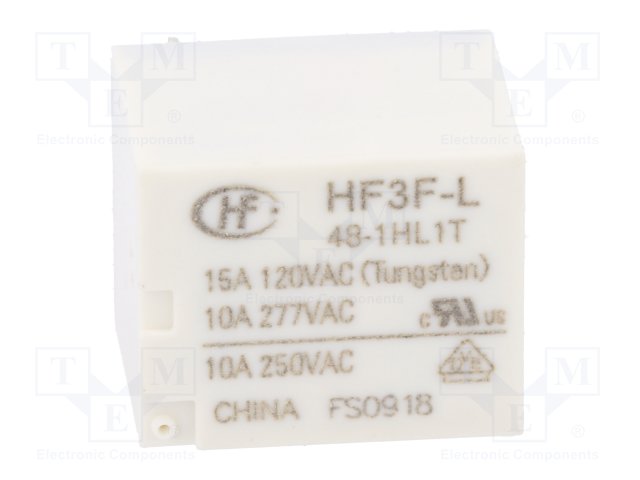 Реле: электромагнитное; SPST-NO; Uобмотки: 48ВDC; 10A/277ВAC; 15А |