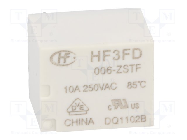 Реле: электромагнитное; SPDT; Uобмотки: 6ВDC; 10A/250ВAC; 10А |