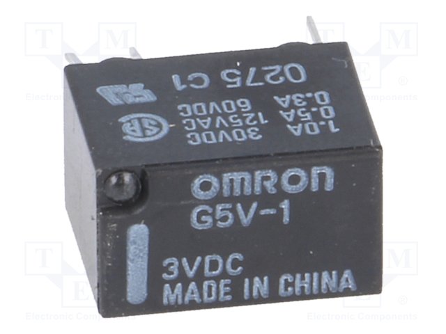 Реле: электромагнитное; SPDT; Uобмотки: 3ВDC; 0,5A/125ВAC; 150мВт |