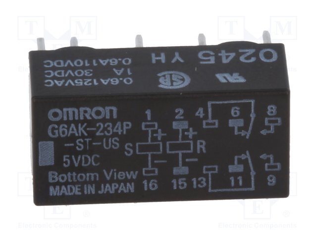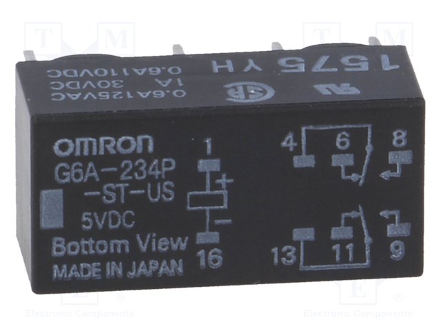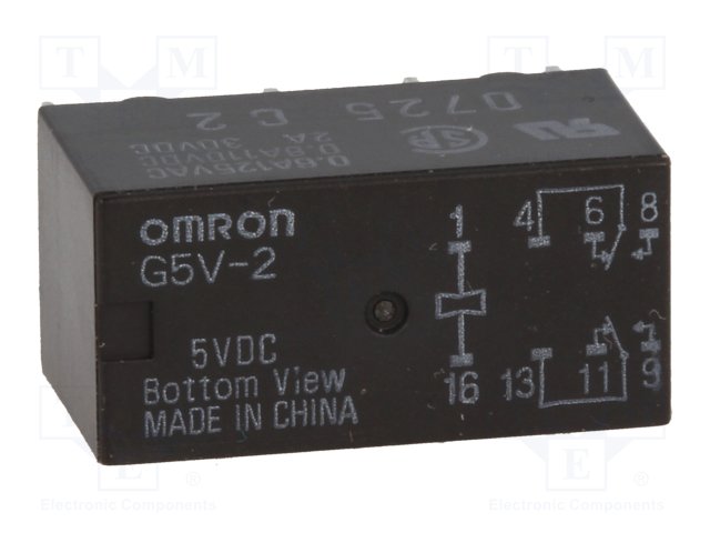 Реле: электромагнитное; DPDT; Uобмотки: 5ВDC; 0,3A/125ВAC; Шаг: 5мм |