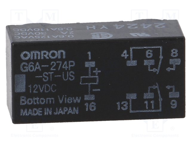 Реле: электромагнитное; DPDT; Uобмотки: 12ВDC; 0,5A/125ВAC; 500мВт |