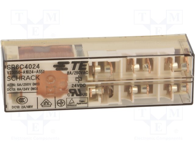 Реле: электромагнитное; NC x2 + NO x4; Uобмотки: 24ВDC; 8А; 480Ом |