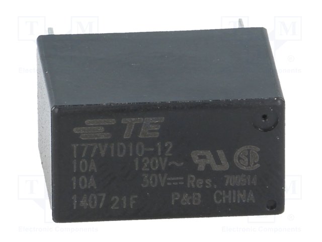 Реле: электромагнитное; SPST-NO; Uобмотки: 12ВDC; 10A/250ВAC; 10А |