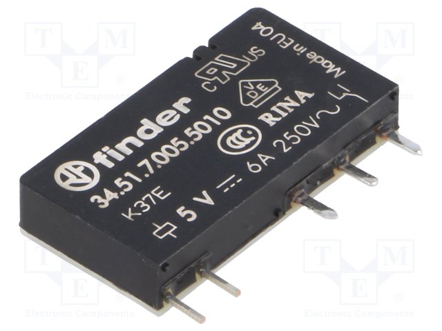 Реле: электромагнитное; SPDT; Uобмотки: 5ВDC; 6A/250ВAC; 3A/30ВDC |