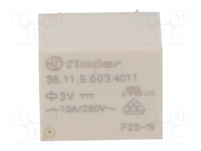 Реле: электромагнитное; SPDT; Uобмотки: 3ВDC; 10A/250ВAC; 15А; 25Ом |