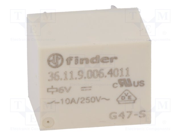 Реле: электромагнитное; SPDT; Uобмотки: 6ВDC; 10A/250ВAC; 15А |