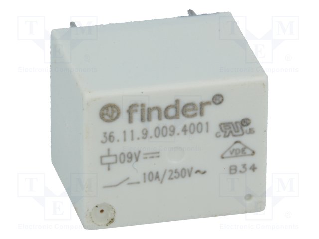 Реле: электромагнитное; SPDT; Uобмотки: 9ВDC; 10A/250ВAC; 15А |