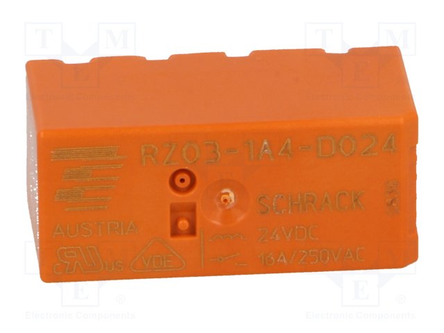 Реле: электромагнитное; SPST-NO; Uобмотки: 24ВDC; 16A/250ВAC; 16А |