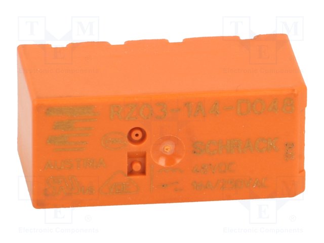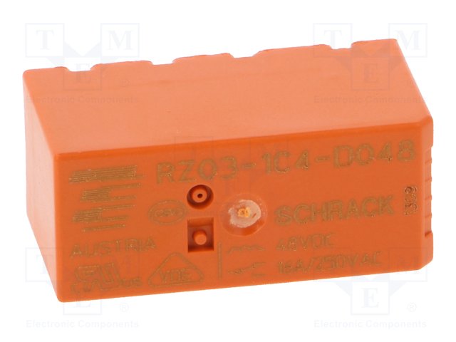 Реле: электромагнитное; SPST-NO; Uобмотки: 48ВDC; 16A/250ВAC; 16А |
