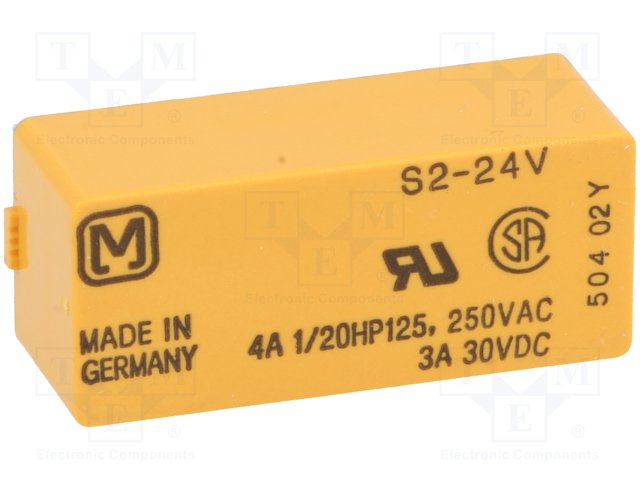Реле: электромагнитное; Uобмотки: 24ВDC; 4А; макс.250ВAC |