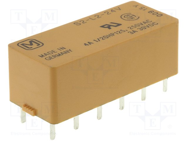 Реле: электромагнитное; DPDT; Uобмотки: 24ВDC; 0,5A/125ВAC; 200мВт |