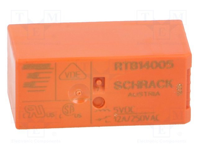 Реле: электромагнитное; SPDT; Uобмотки: 5ВDC; 12A/250ВAC; 62Ом |