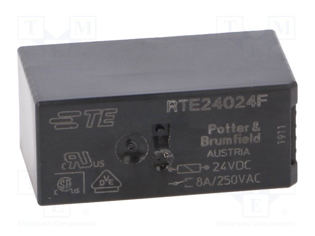 Реле: электромагнитное; SPDT; Uобмотки: 24ВDC; 16A/250ВAC; 1,44кОм |